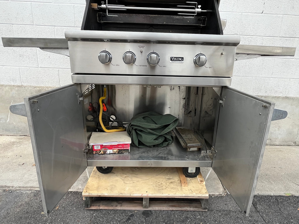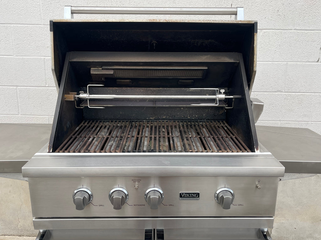Love grilling, but frustrated with your base-model barbecue? Step up your game with this Viking Ultra-Premium 36" gas grill! Built of heavy duty stainless steel, it looks incredible, is easy to clean and will last for years. Featuring a massive 620 sq. in. grilling surface, electronic ignition with auto re-ignition, a removable smoker box, a built-in, removable rotisserie, and so much more, this unit is fully loaded! Impress your friends and neighbors and make backyard barbecuing fun again for far less than new with this gently used unit.
