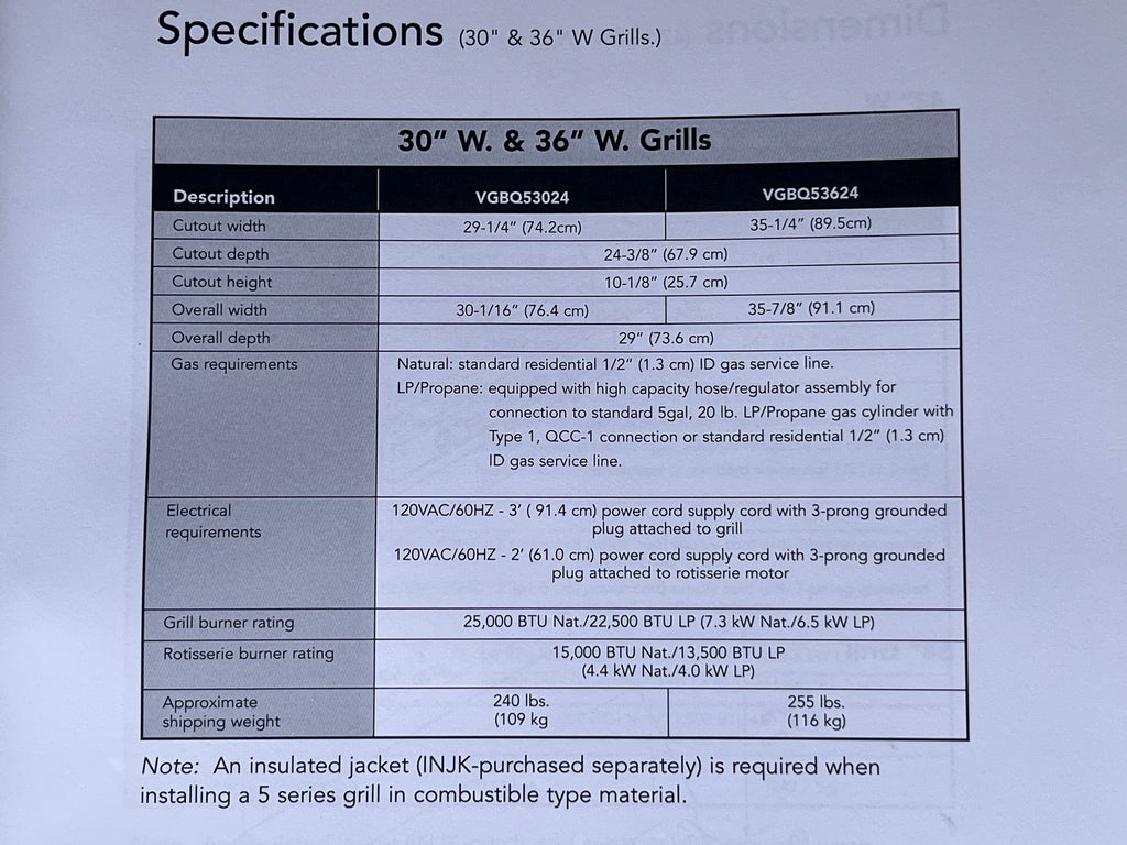 • Model # VGBQ53624; built 2014; includes matching cart (# BQC5361SS).
