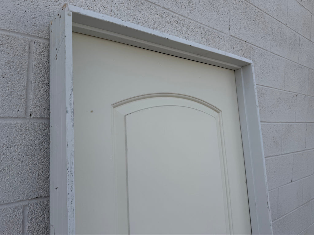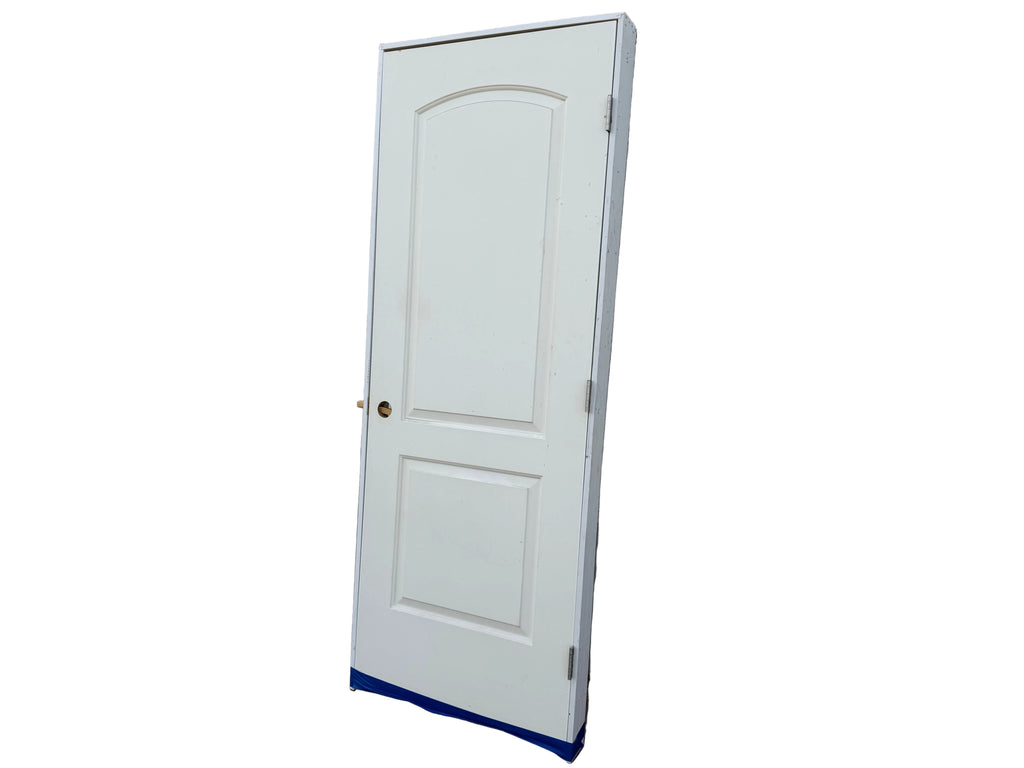 This new single prehung KD (knockdown) door is a quick, simple way to update or add to home or office space interiors. Built from molded composite wood, the hollow core door slab features a single lockset bore, round top panel and satin nickel hinges. Ready to install, it's 30" wide, 80" high and 7/8" thick (not including jamb). At 50% off Lowes' price, it's an excellent inexpensive option.