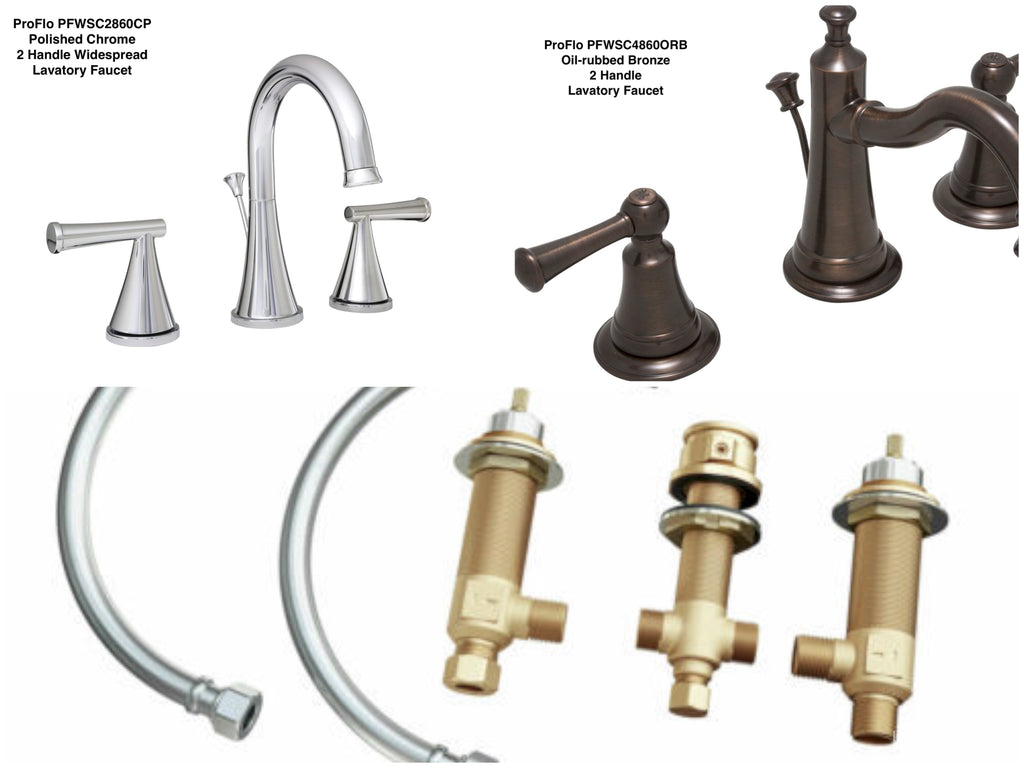 At 90% off MSRP, these new-in-box ProFlo bathroom fixtures are an incredible value! We have several options for lavatory sinks in both contemporary and traditional styles and finishes, as well as basic tub valves. Perfect for restrooms in single family homes, apartments, mobile homes, condos and townhouses, they are also great for rentals, hotels, motels, offices and other commercial spaces. Use them for new builds, upgrades, remodels, renovations, refreshes and more!