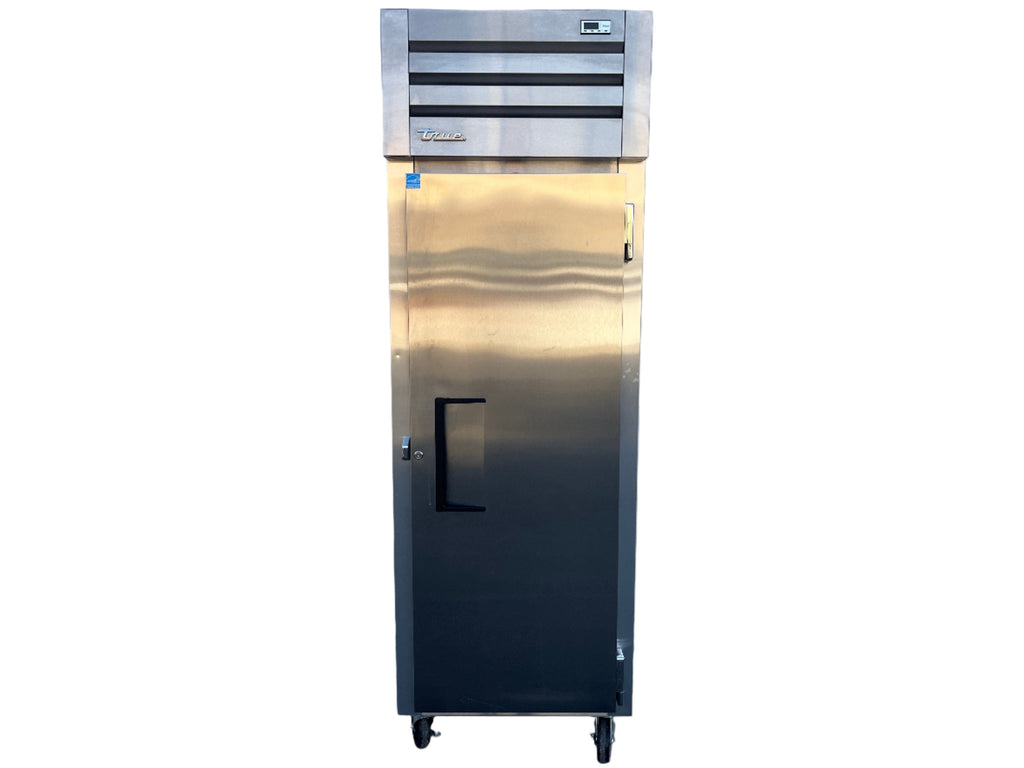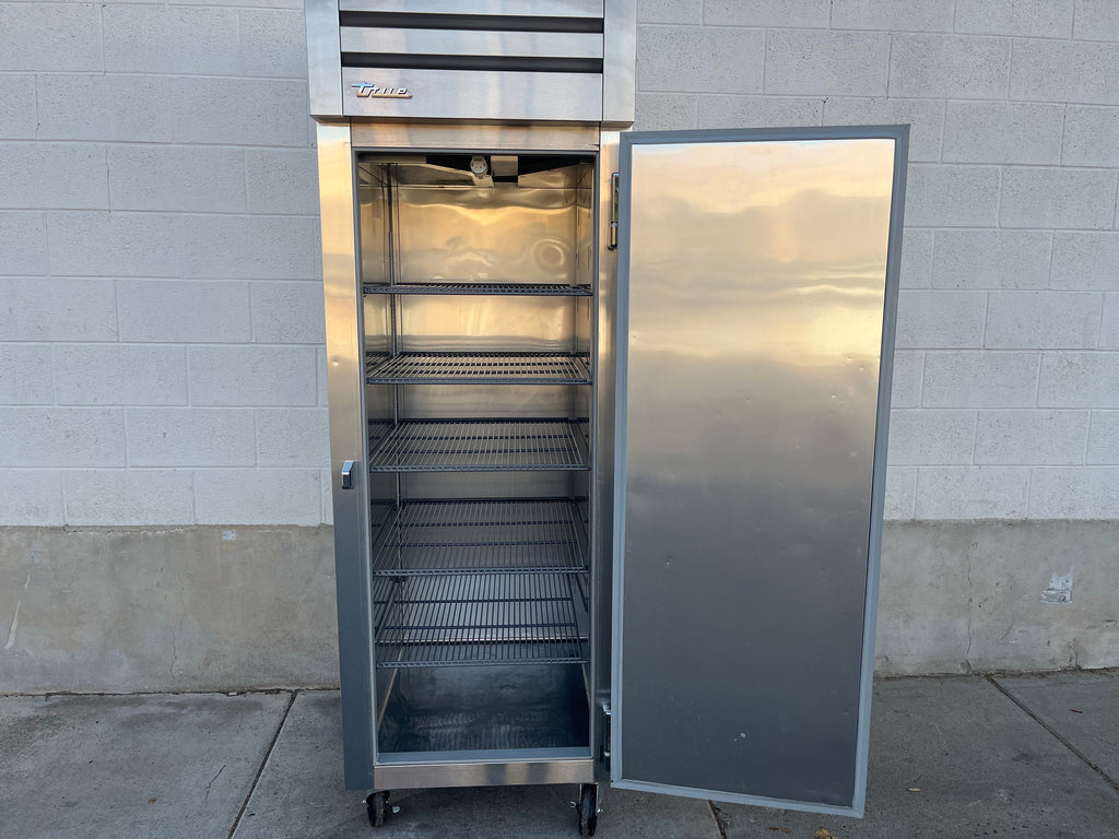 With a slim 27-inch wide cabinet, this True commercial refrigerator offers a compact, yet surprisingly spacious cold storage solution for your restaurant, cafe, coffee shop, bar or other food service facility. Features an external digital temperature control with easy-to-read display and top-mounted refrigeration components to maximize interior space. In excellent, gently-used condition with only minor blemishes. Save thousands off new!